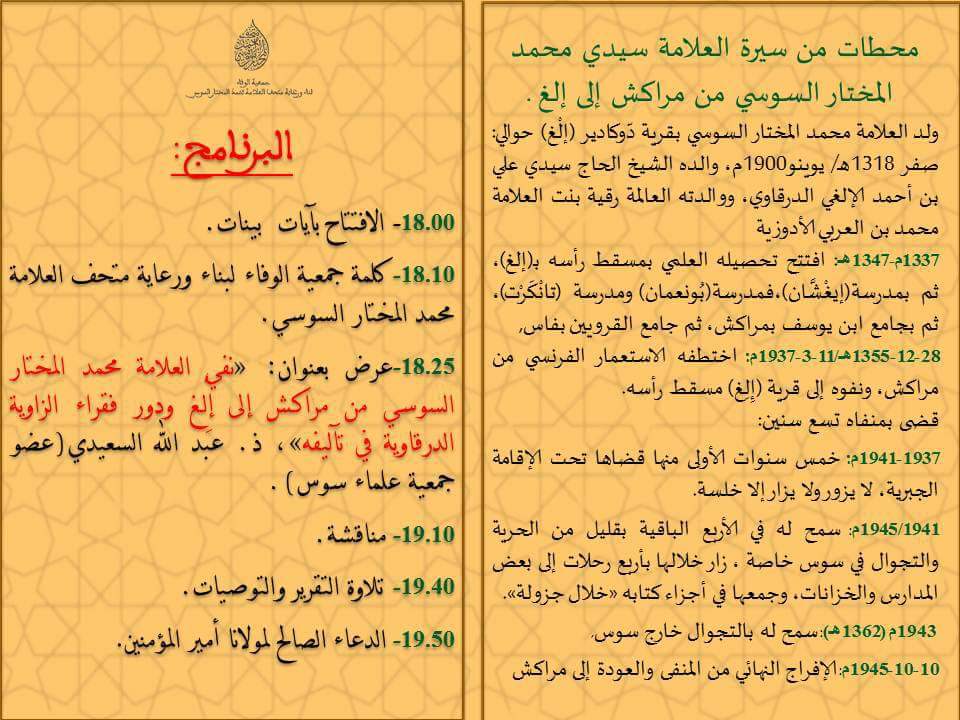 :تعلن جمعية الوفاء لبناء ورعاية متحف المختار السوسي عن تنظيم ندوة علمية في موضوع